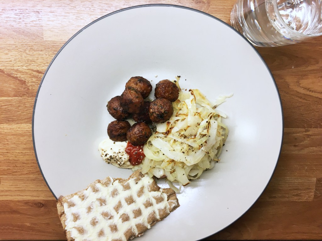 - 1 par stycken köttbullar stekt i stekfett med dill