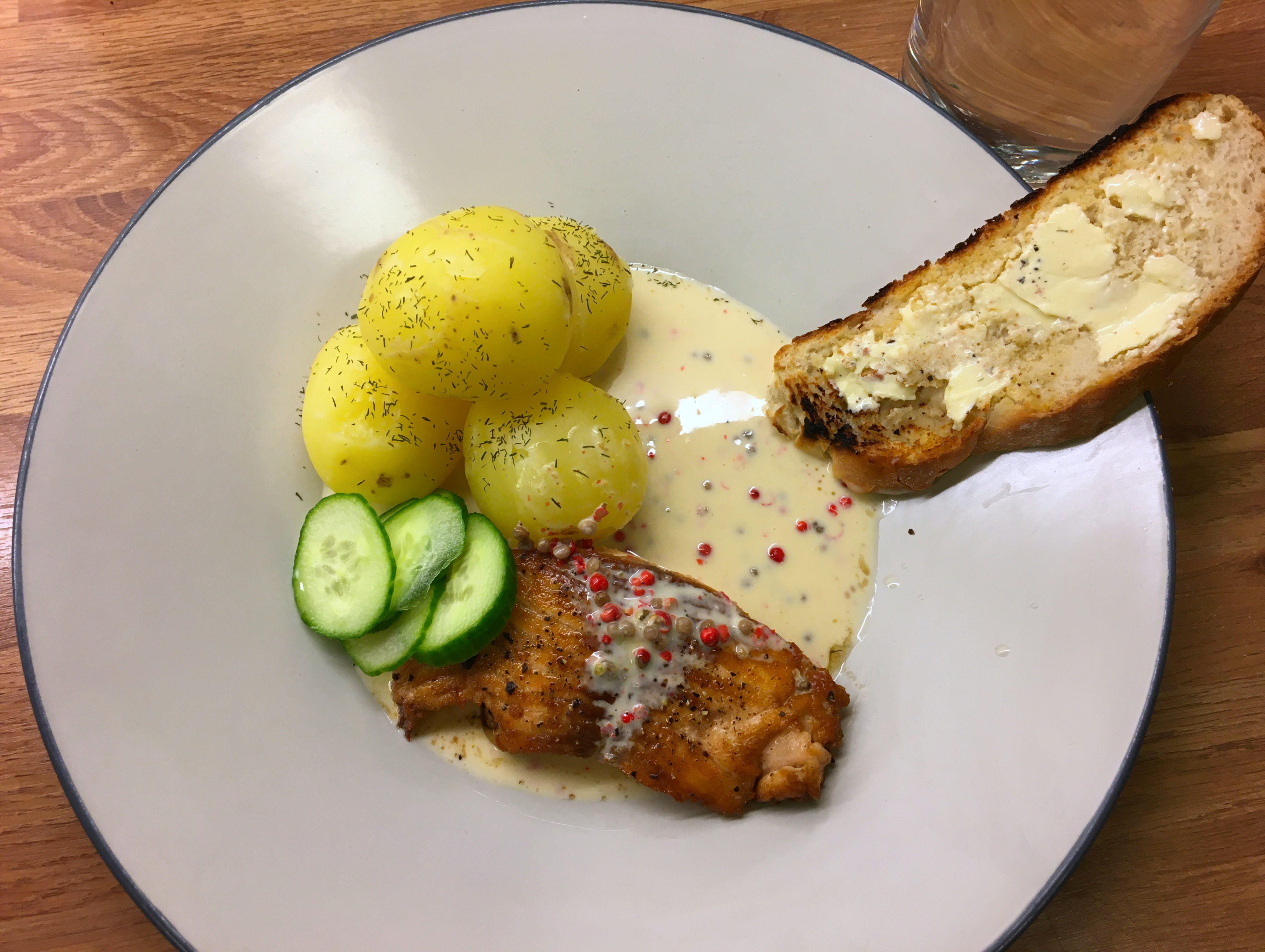 Maträtten passar bra tillsamman med bröd, smör och valfri dryck
