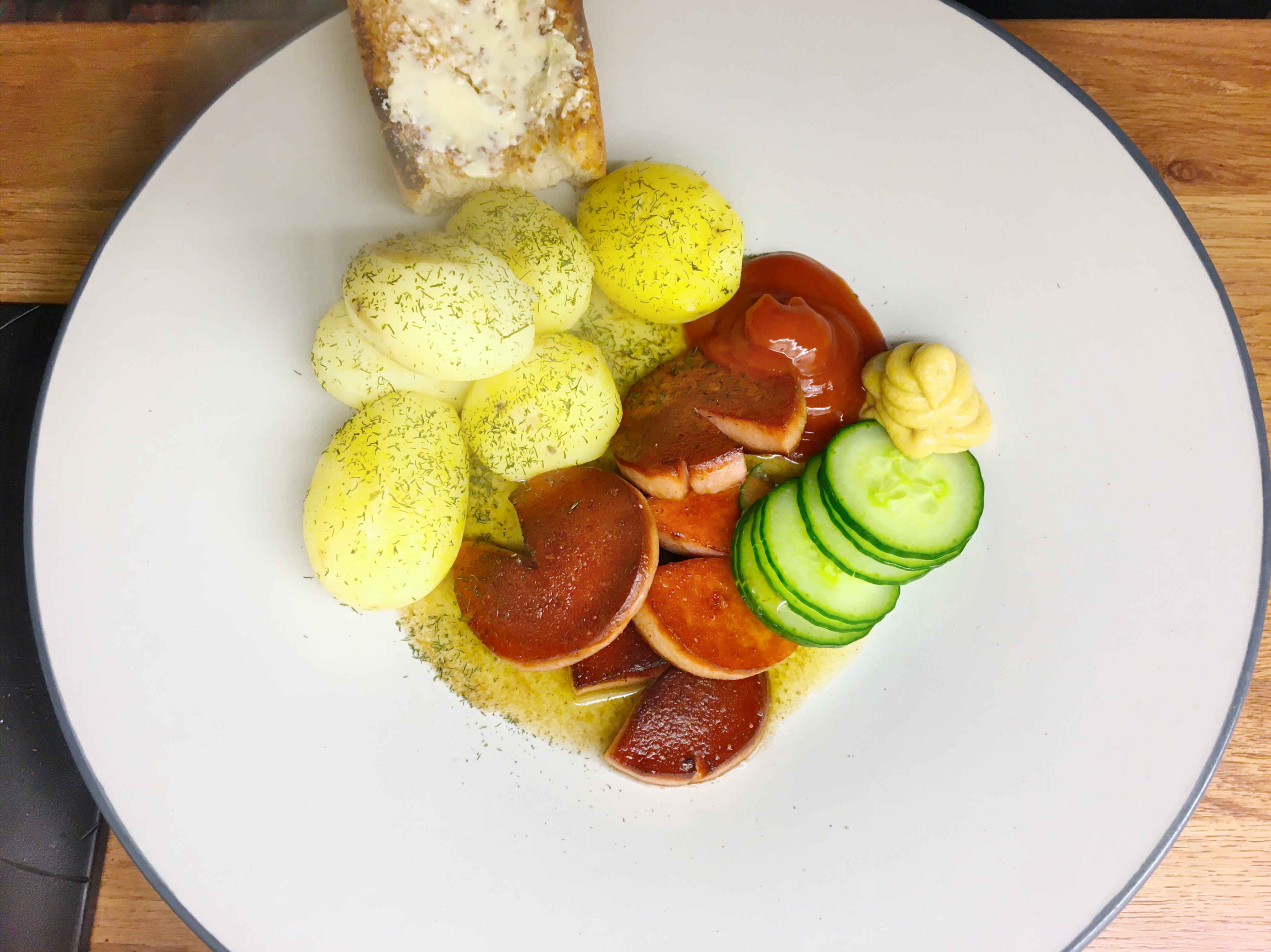 Maträtten passar bra tillsamman med bröd, smör och valfri dryck