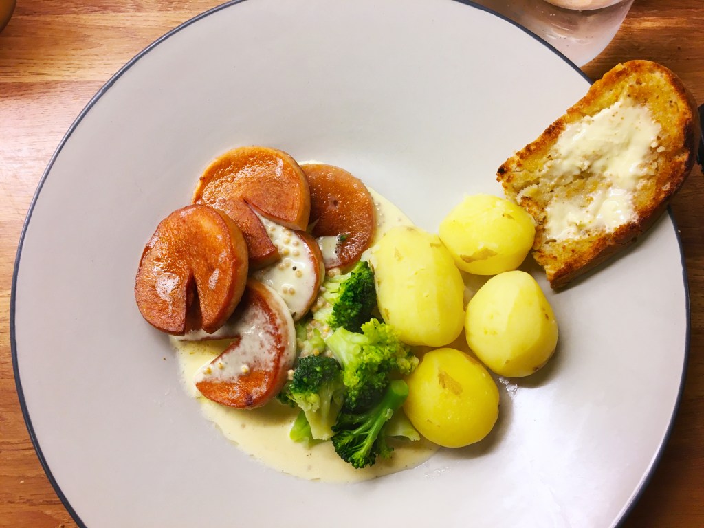 Maträtten passar bra tillsamman med bröd, smör och valfri dryck