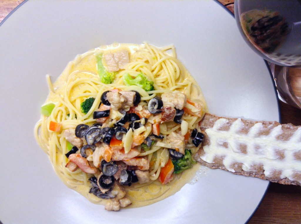 Nostalgisk och vild Spaghetti med biff, grönsaker i gräddsås Tallriken är en portion Spaghetti kokt Sås(grädde, buljong, citron, strimlad stekt biff, färsk tomat, broccoli, gul lök och svarta oliver) Maträtten passar bra tillsamman med bröd, smör och valfri dryck Dela detta: Klicka för att dela på X (Öppnas i ett nytt fönster) X Klicka för att dela på Facebook (Öppnas i ett nytt fönster) Facebook Gilla Laddar in … Relaterade Standard