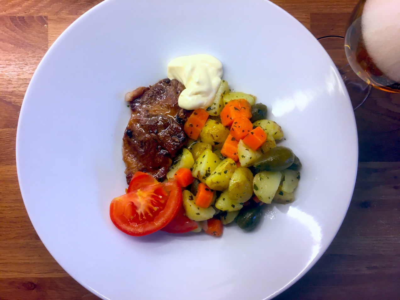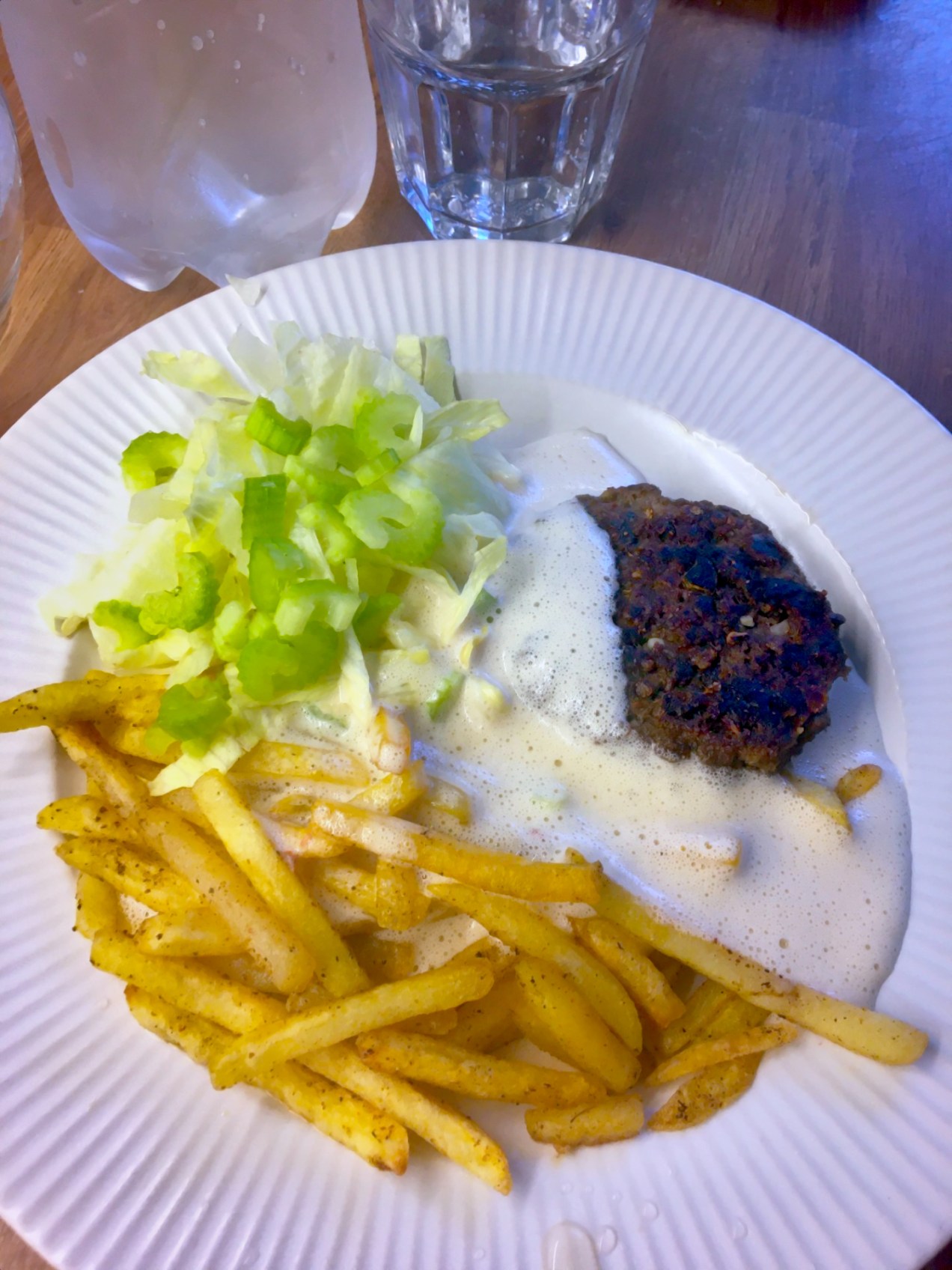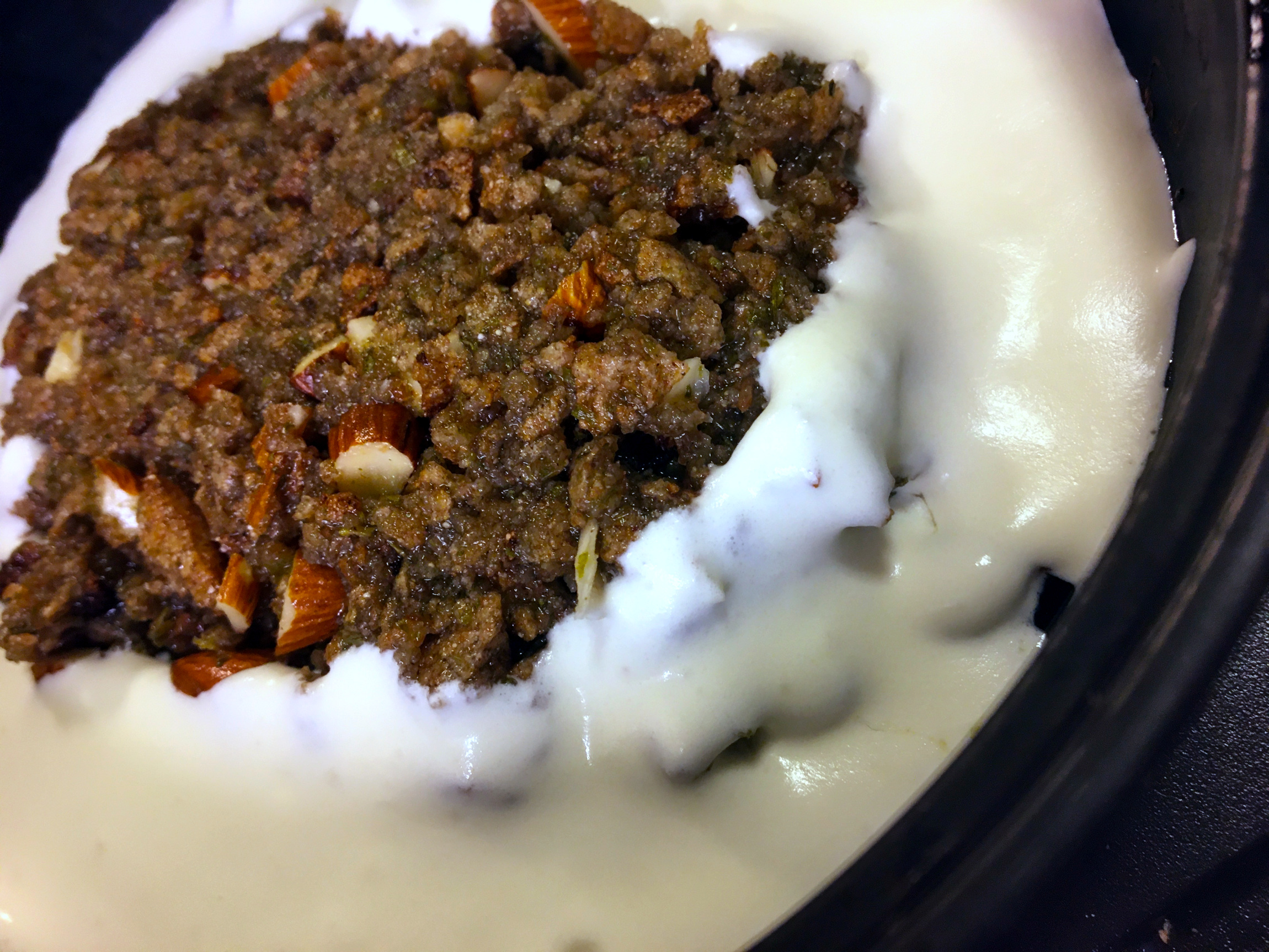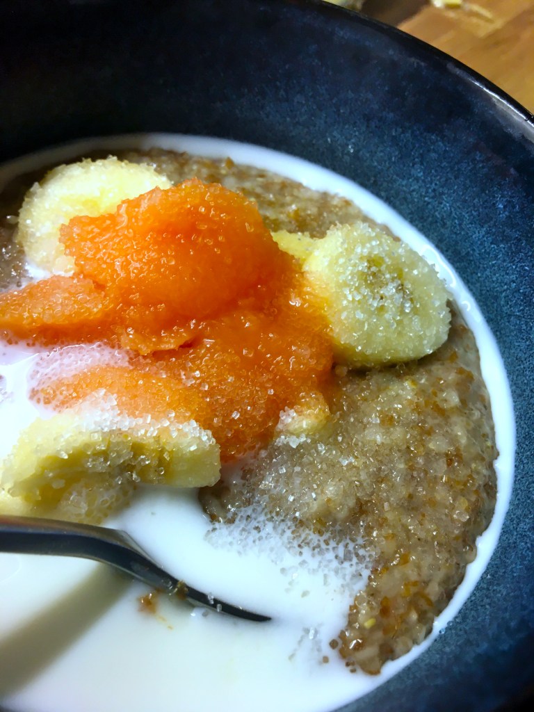 - 1 del matlagnings fett, mjöl alt. mandelmjöl och socker alt. sötningsmedel för bordsbruk Som socker låg kolhydrater, lite sirap alt. fibersirap, havregryn arbetad till en deg, rullad till två slingor, uppdelad, nedtryckt och bakad i spis bevakad