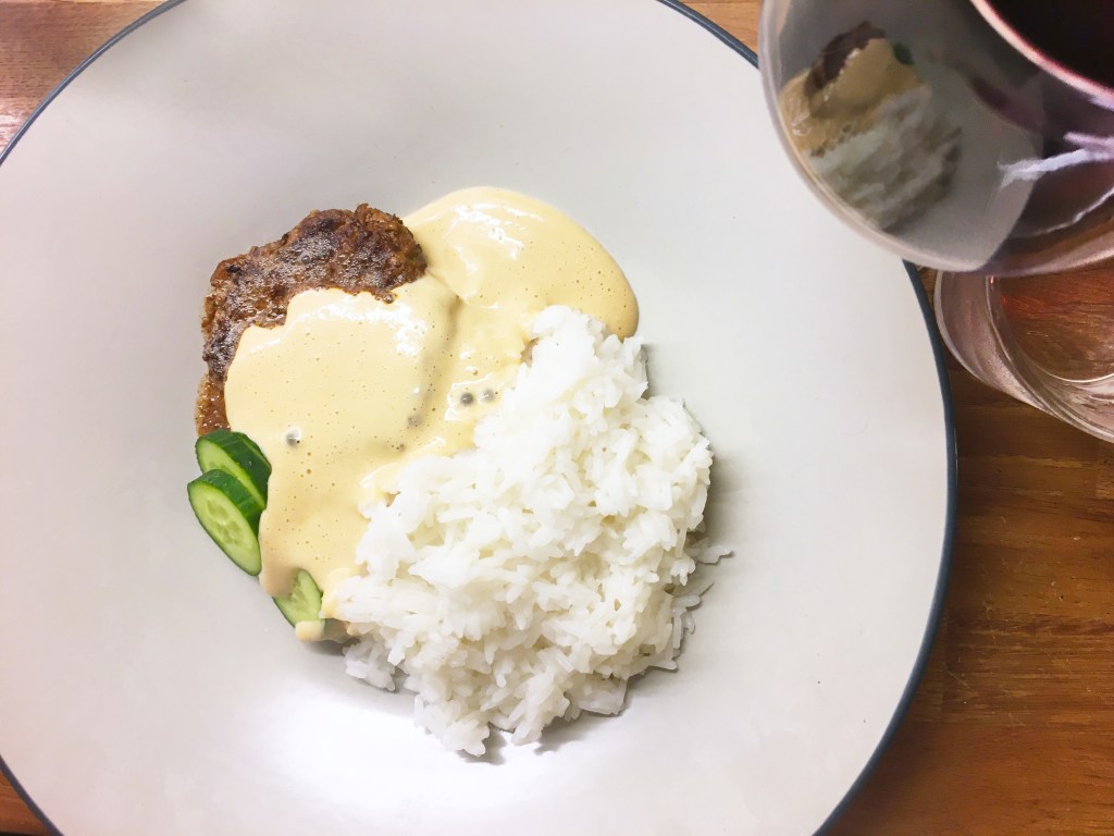 Köttfärsbiffar med grönpepparsås, ris och grönsak