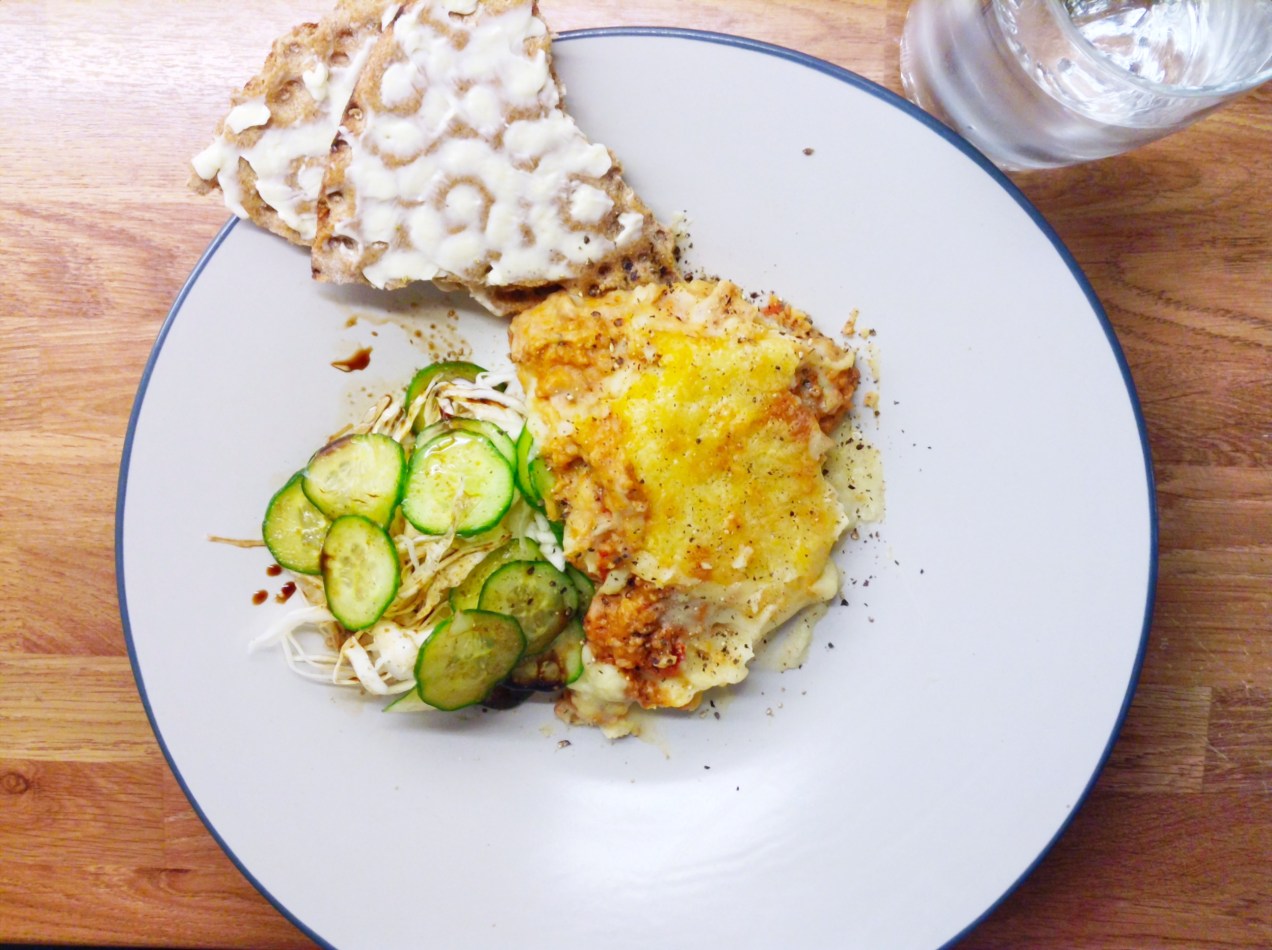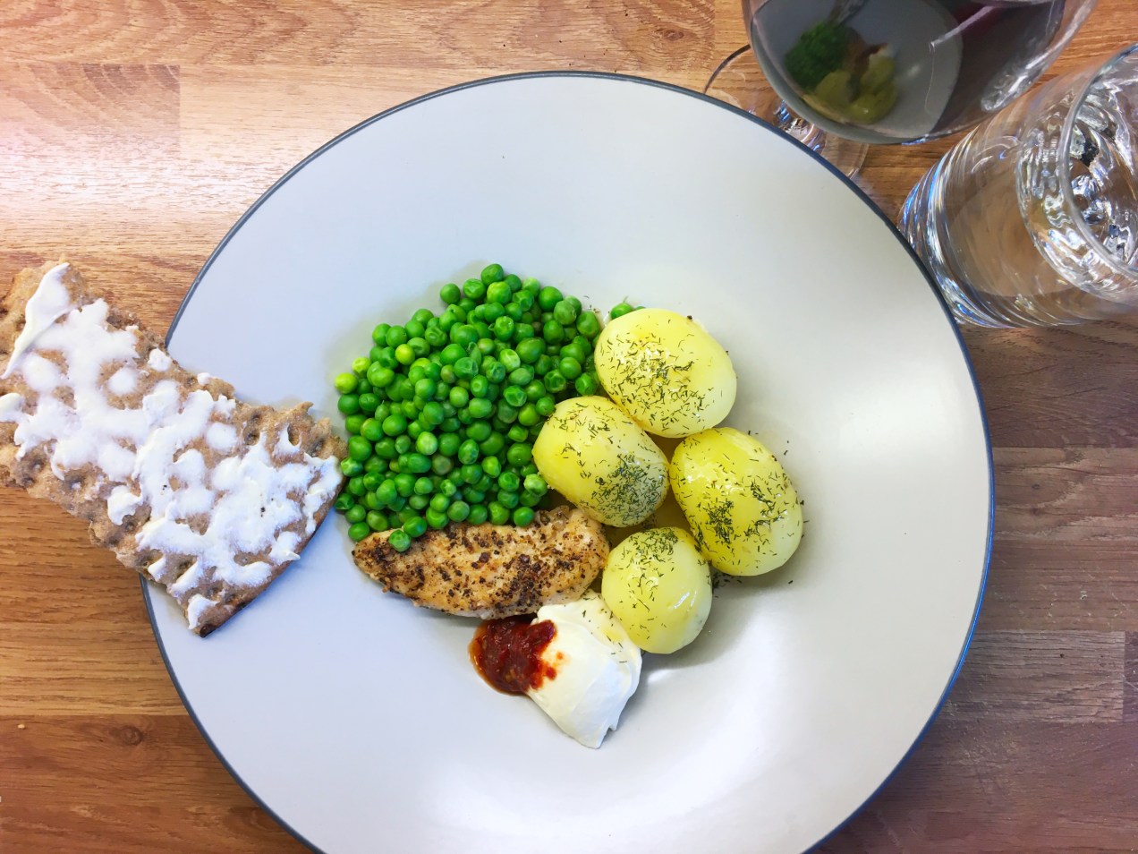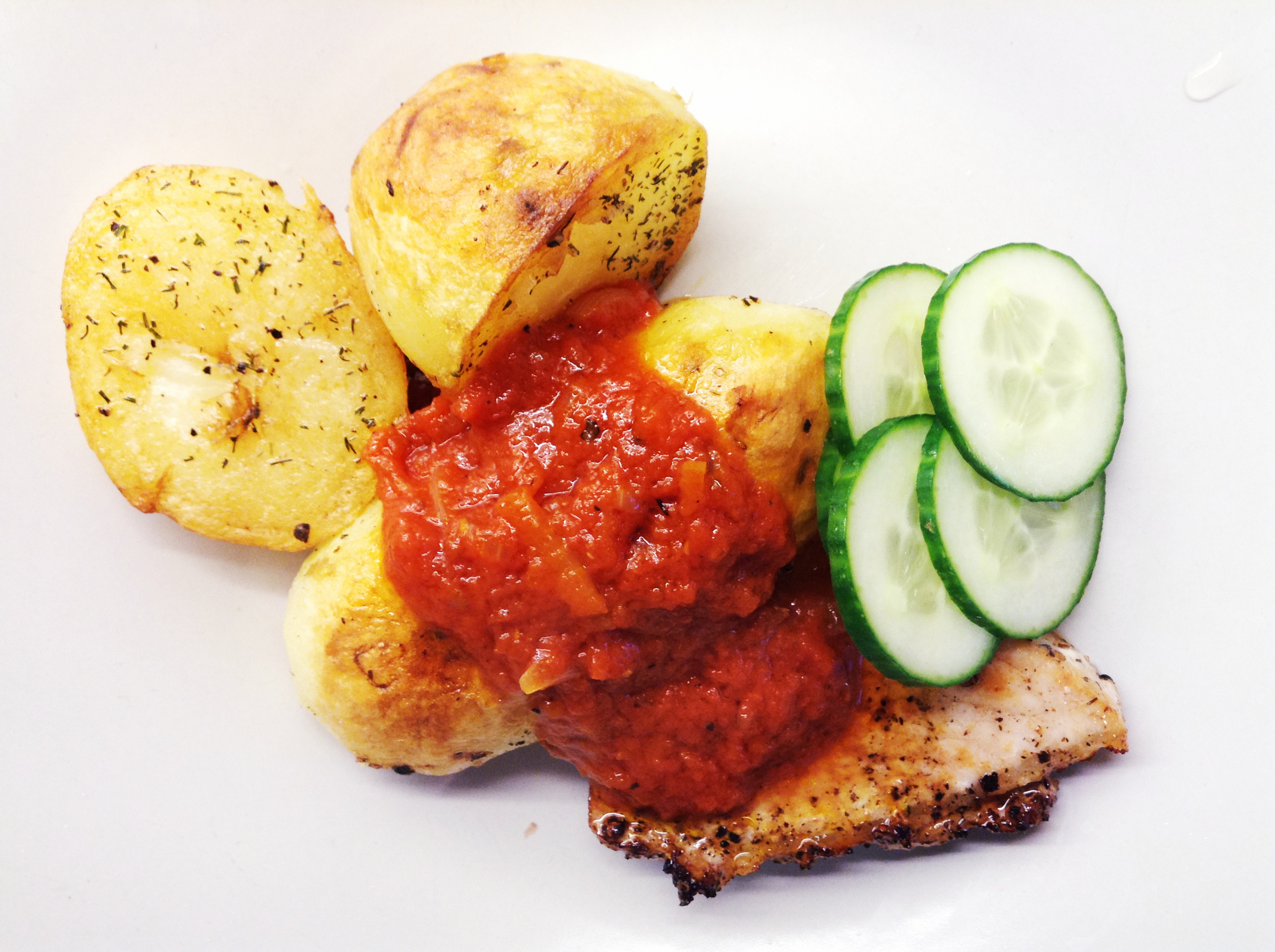 - 1 del kycklingfilé stekt i stekfett med salt