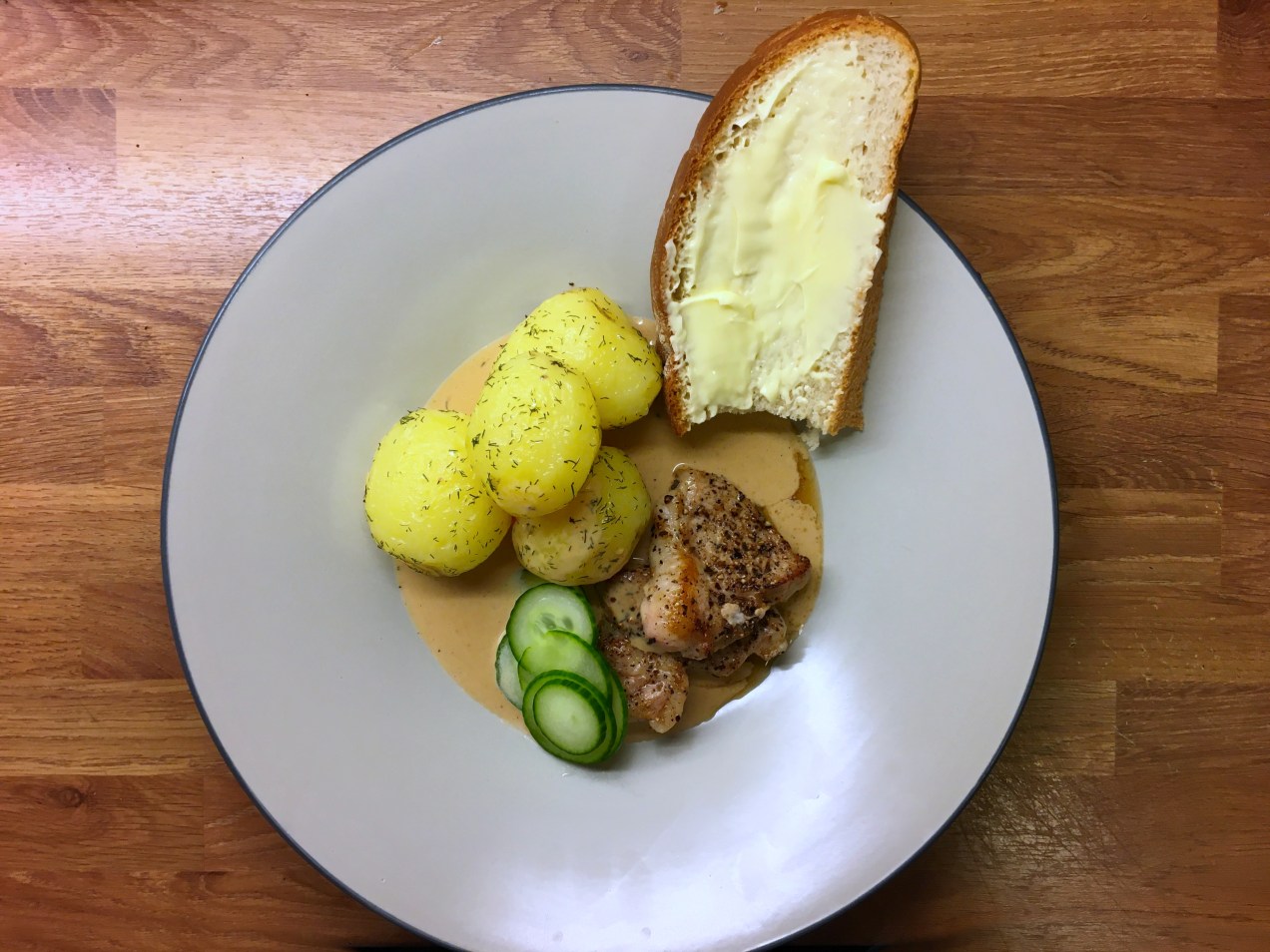 Maträtten passar bra tillsamman med bröd, smör och valfri dryck